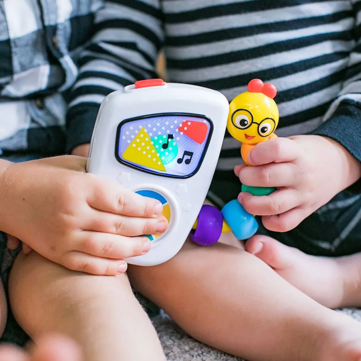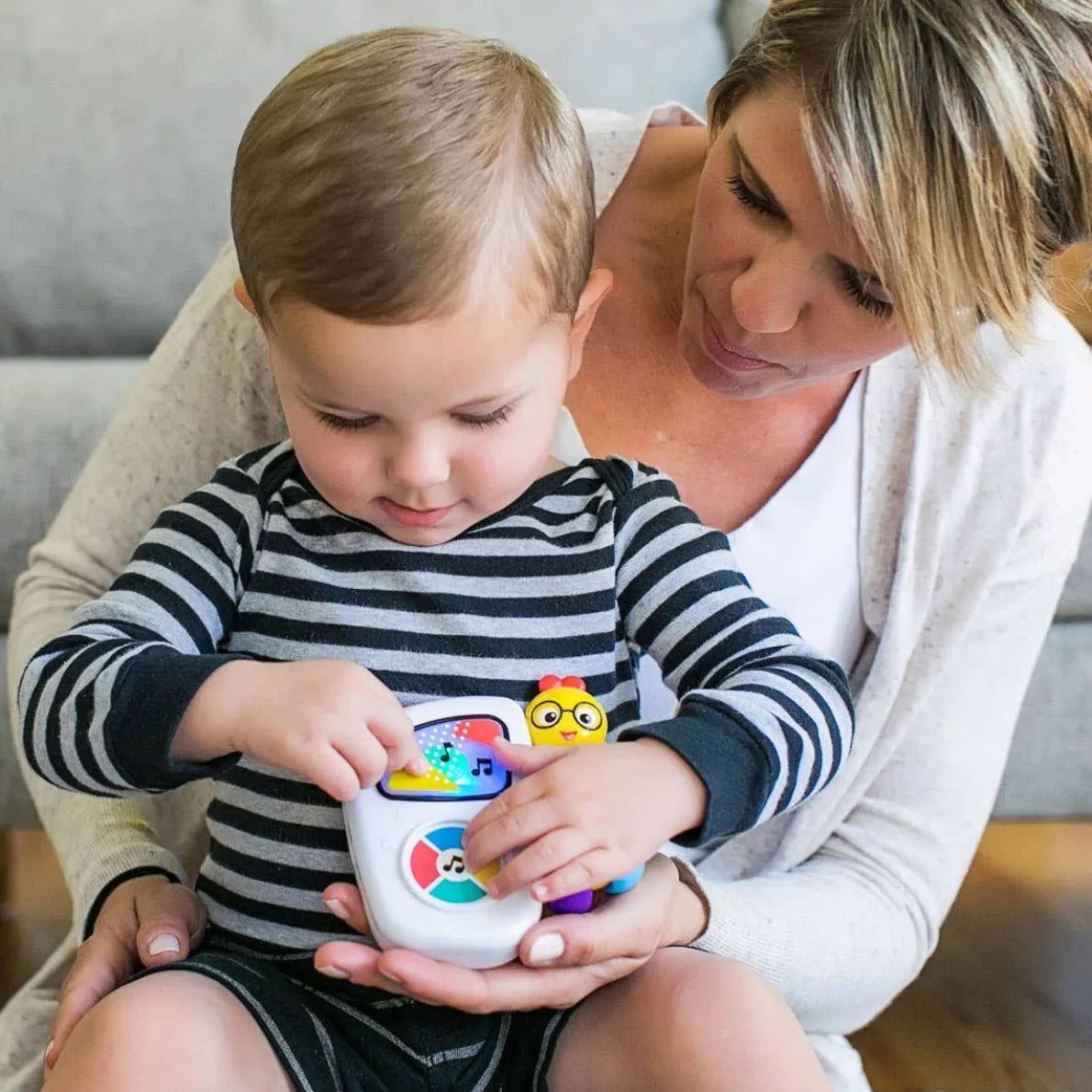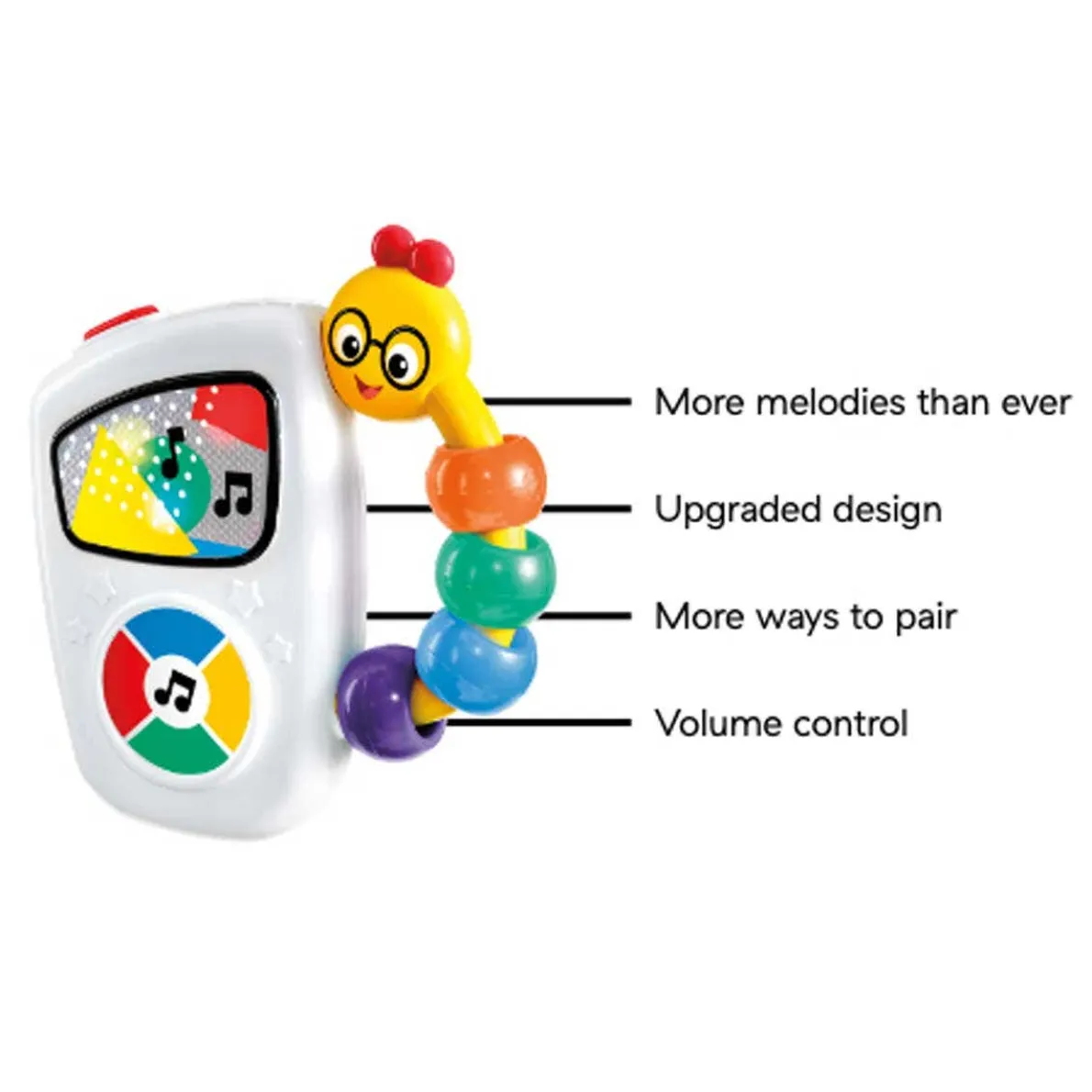 This baby-friendly “MP3 player” introduces little ears to tunes from classic composers like Mozart and Vivaldi. The large button makes it easy to toggle through seven familiar melodies, while the colourful lights that dance across the screen are sure to delight and amuse. The beaded caterpillar handle is easy to grasp, so babies can take their tunes along anywhere!