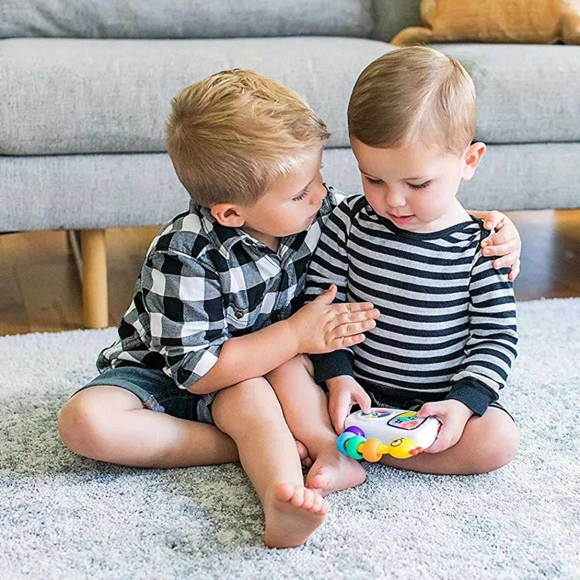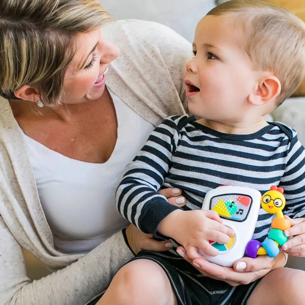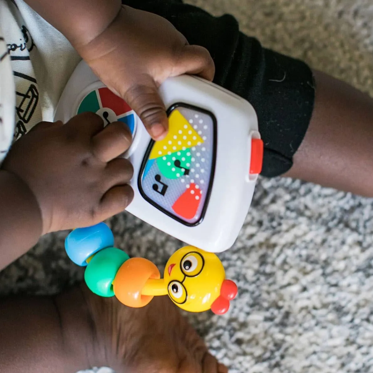 This baby-friendly “MP3 player” introduces little ears to tunes from classic composers like Mozart and Vivaldi. The large button makes it easy to toggle through seven familiar melodies, while the colourful lights that dance across the screen are sure to delight and amuse. The beaded caterpillar handle is easy to grasp, so babies can take their tunes along anywhere!