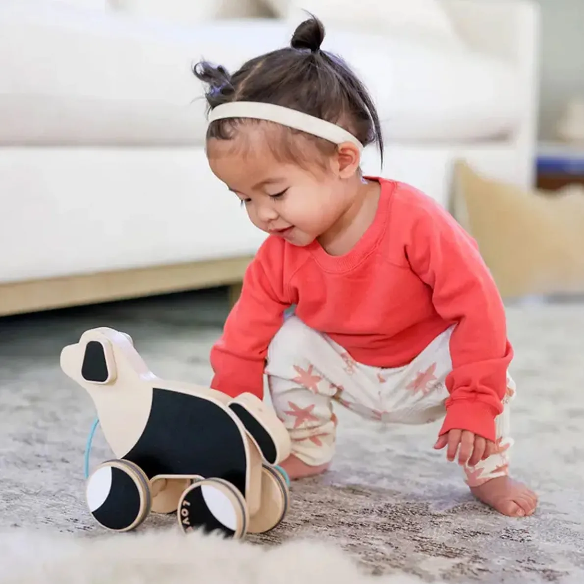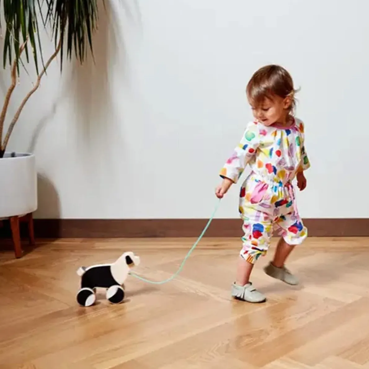 The Pull Pup is designed to warm every toddler’s heart. Made of sustainably harvested wood, this beloved pull toy is ready to roll along a floor, rug, or sidewalk. Little hands can make the ears and tail stand up and stay up! Coordination, grip, and gross motor development included.