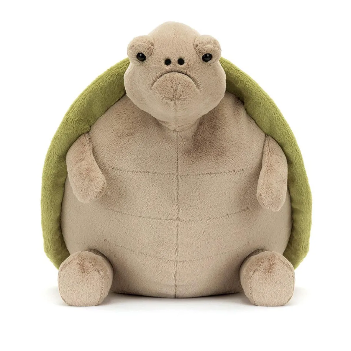 Timmy Turtle needs a friend to cheer him up – or someone to have a good grumble with! This soft, sturdy guy has a green textured shell, embroidered fudge fur and squeezable feet. Don’t be fooled by the face – Timmy gives surprisingly good hugs!