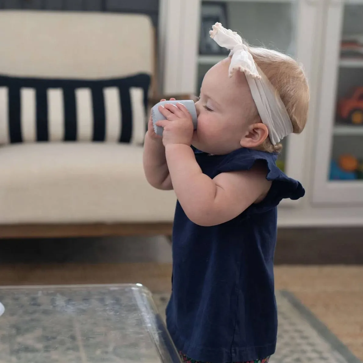 Learning to drink out of an open cup is an important developmental milestone, and the Tiny Cup helps baby transition from bottle to cup. Open cup drinking supports healthy oral and speech development, aids with teething, helps baby learn to have a strong swallow and can decrease tooth decay.