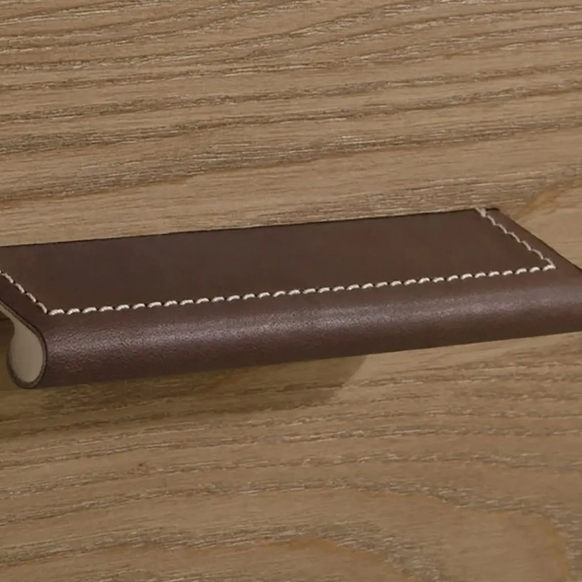 - Unique Dark Brown Custom-made Leather handles with contrasting stitching