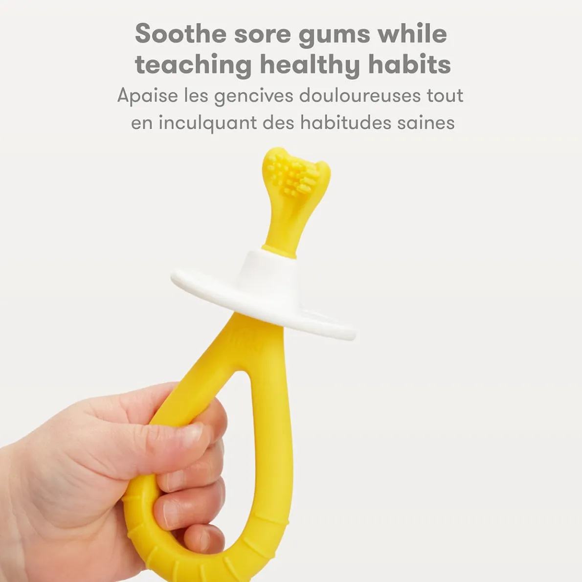 - LEVEL-UP: Start ’em at 6 months + graduate to the Training Toothbrush for Toddlers at 18 months to continue their brushing habits