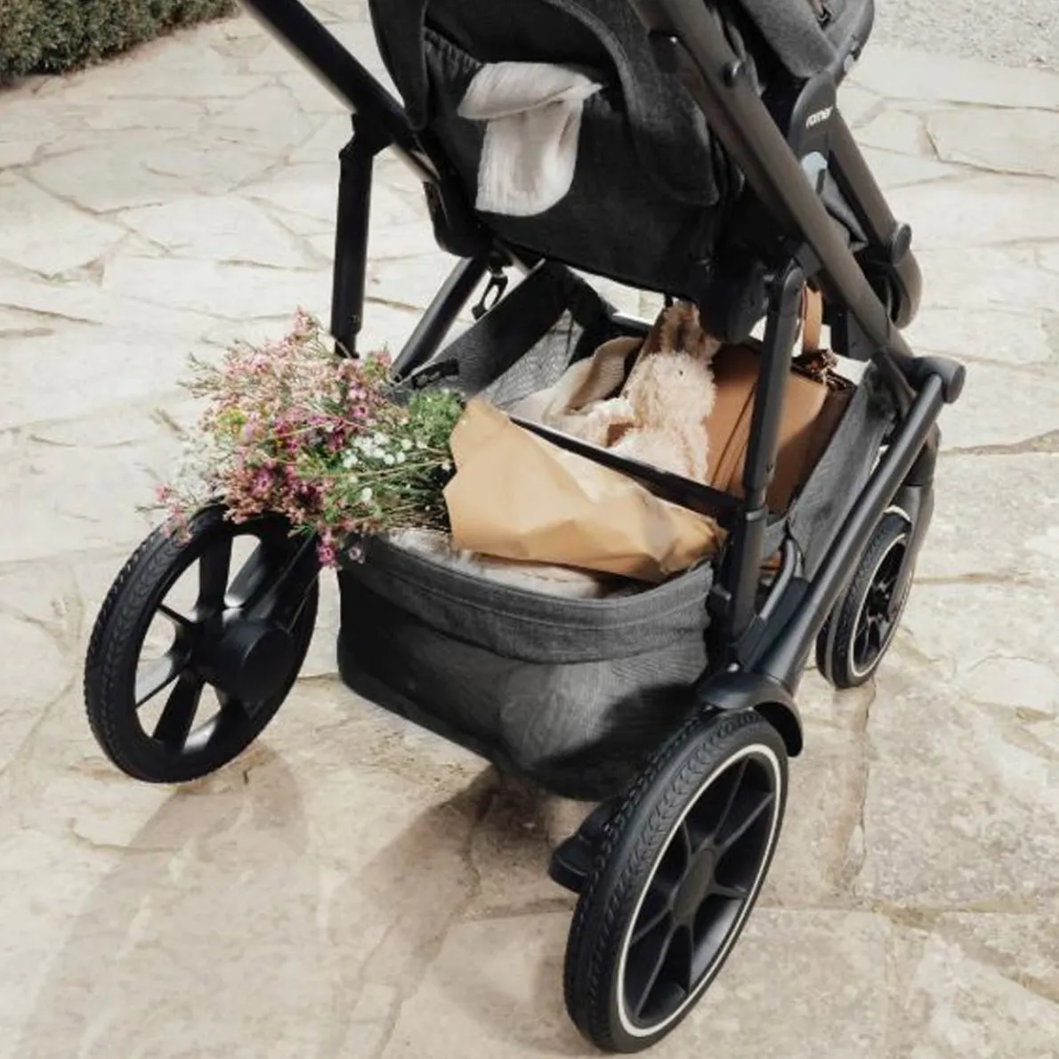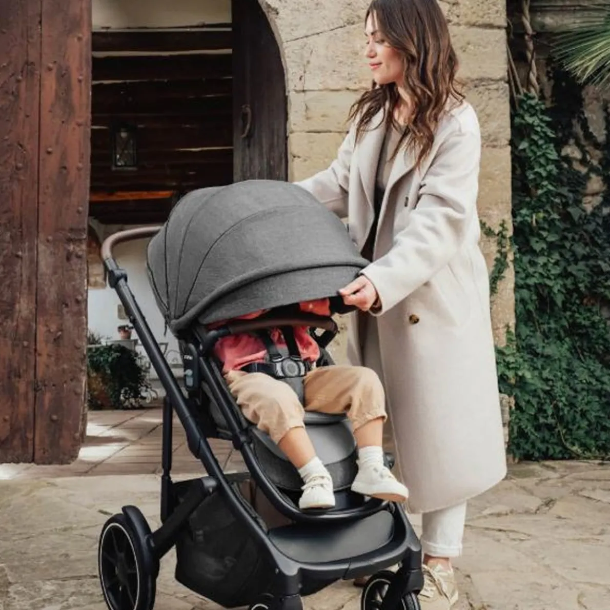 Make each tiny discovery a cherished moment in the Tura™ modular stroller. You’ll love the timeless design and refined look of this versatile modular stroller, and your child will love the customizable comfort and luxuriously soft fabrics. This portable stroller includes a reversible and reclining toddler seat. To convert Tura into a baby stroller, connect it directly to your Juni™ infant car seat* or Sera™ bassinet*. The elegant woven fabric is made from recycled materials, and the full-coverage canopy is UPF 50+. With a slim design and swivel-locking front wheels, you can maneuver this toddler stroller with ease. The central suspension and all-terrain tires create gentle rides on any landscape. *Sold separately
