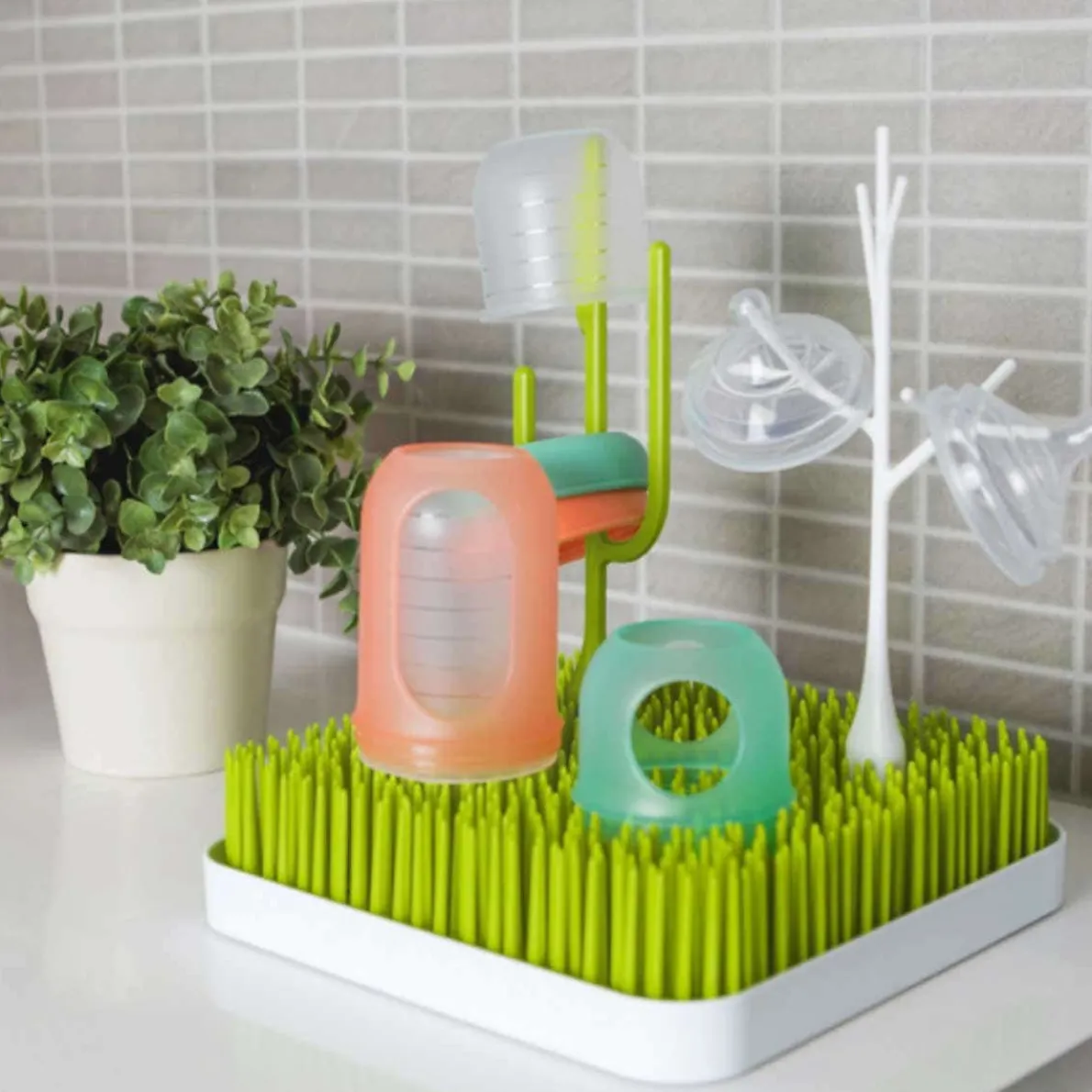 The POKE and TWIG drying rack accessories attach easily to your LAWN, GRASS, or PATCH drying rack. Their multi-limb design gives you plenty of places to stick bottle and sippy cup parts while leaving you plenty of room below for drying larger items. This dynamic duo helps you reduce the counter clutter and keep small parts handy.