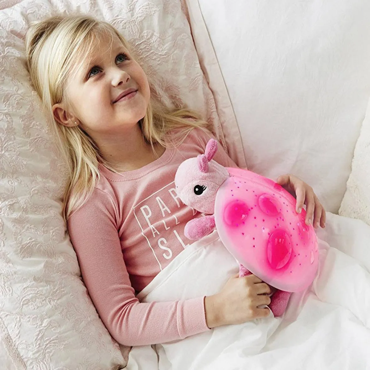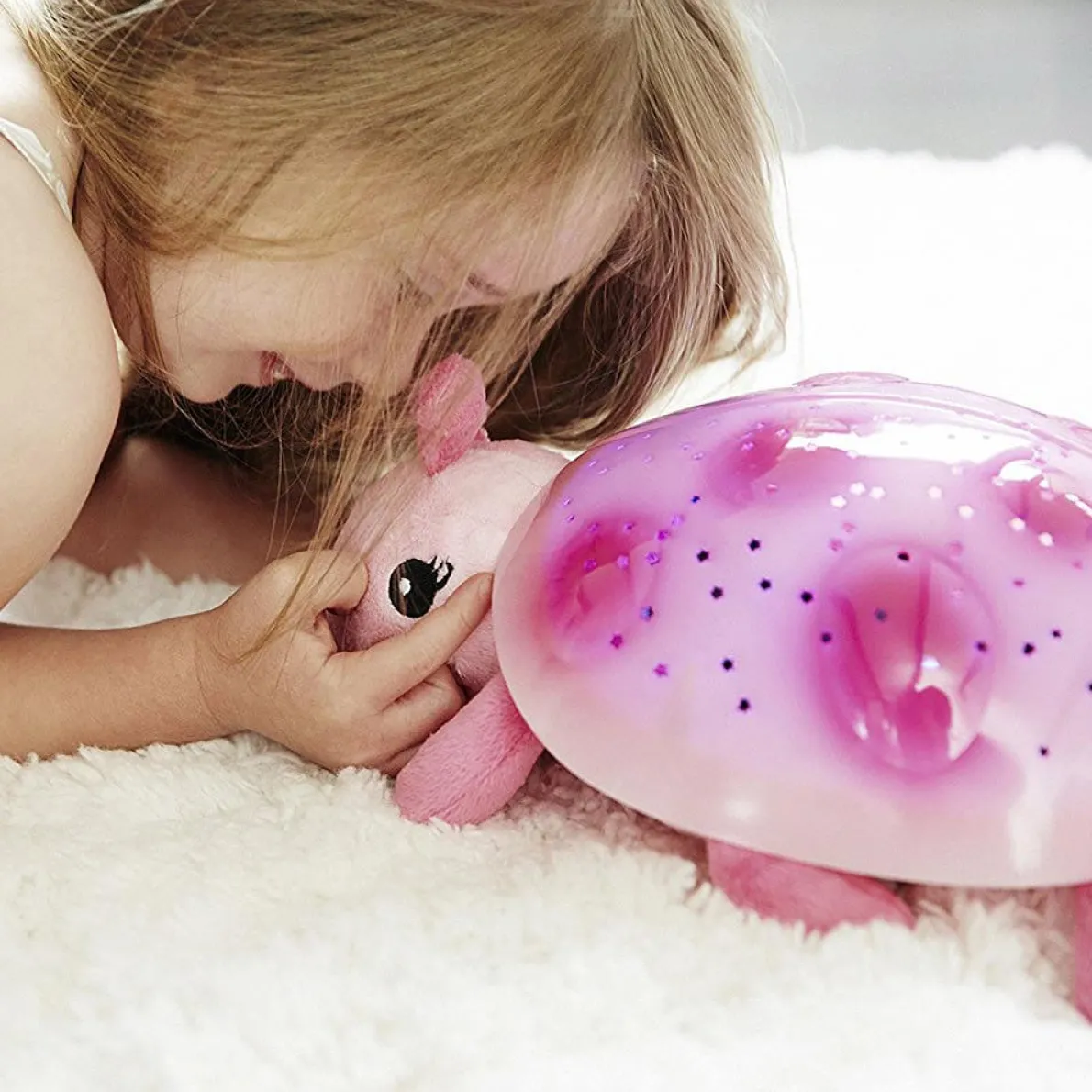 The Cloud B Twilight Special Edition is a plush toy that transforms any room into a starry night sky to help comfort children to sleep. From within his plastic shell, Twilight projects a magical constellation of stars onto bedroom ceiling and walls in three soothing color options. Twilight’s shell illuminates to help ease children’s fear of the dark.