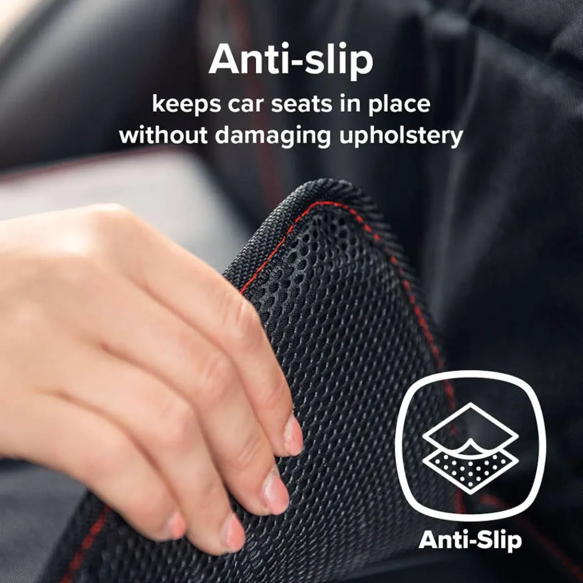 Ultra-Mat was designed to cover the entire vehicle seat to keep car-seats firmly installed without causing harm to the upholstery, protecting both car and baby. Made with Pentalock technology, a 5-layer high strength material that resists dirt and liquids for easy clean-up once the journey is over. Ultra Mat also features 3 handy mesh storage pockets to give a little extra storage for travel essentials. The cushioned, full-seat design and high-density foam panels protect upholstery from indentations, scratches and scrapes. Designed for all that life can throw at it with highly durable, water resistant fabric so you can simply wipe down at the end of the day for the ultimate in in-car clean. Designed to work with seat belt and LATCH/UAS/isofix installations and Diono crash tested to help provide the best safety possible for your child.