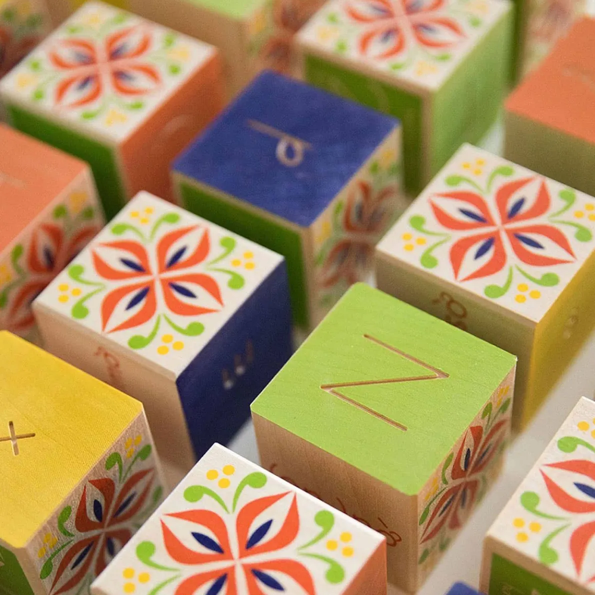 This set includes an extra N, H, and C; the most popular letters in the Vietnamese alphabet. See and feel two debossed letters on each block: one upper case, one lower.