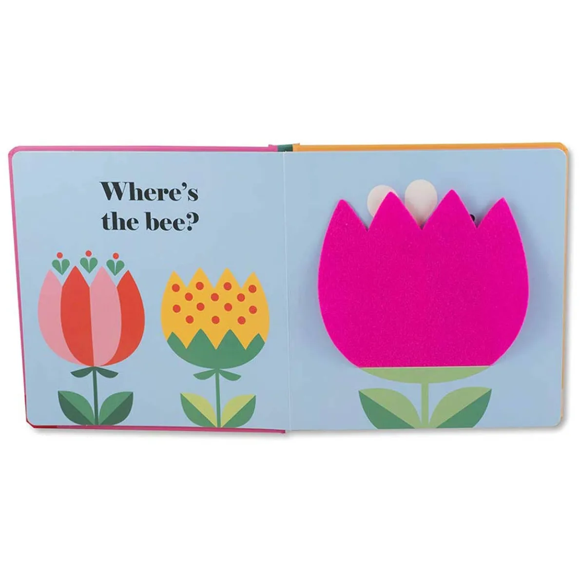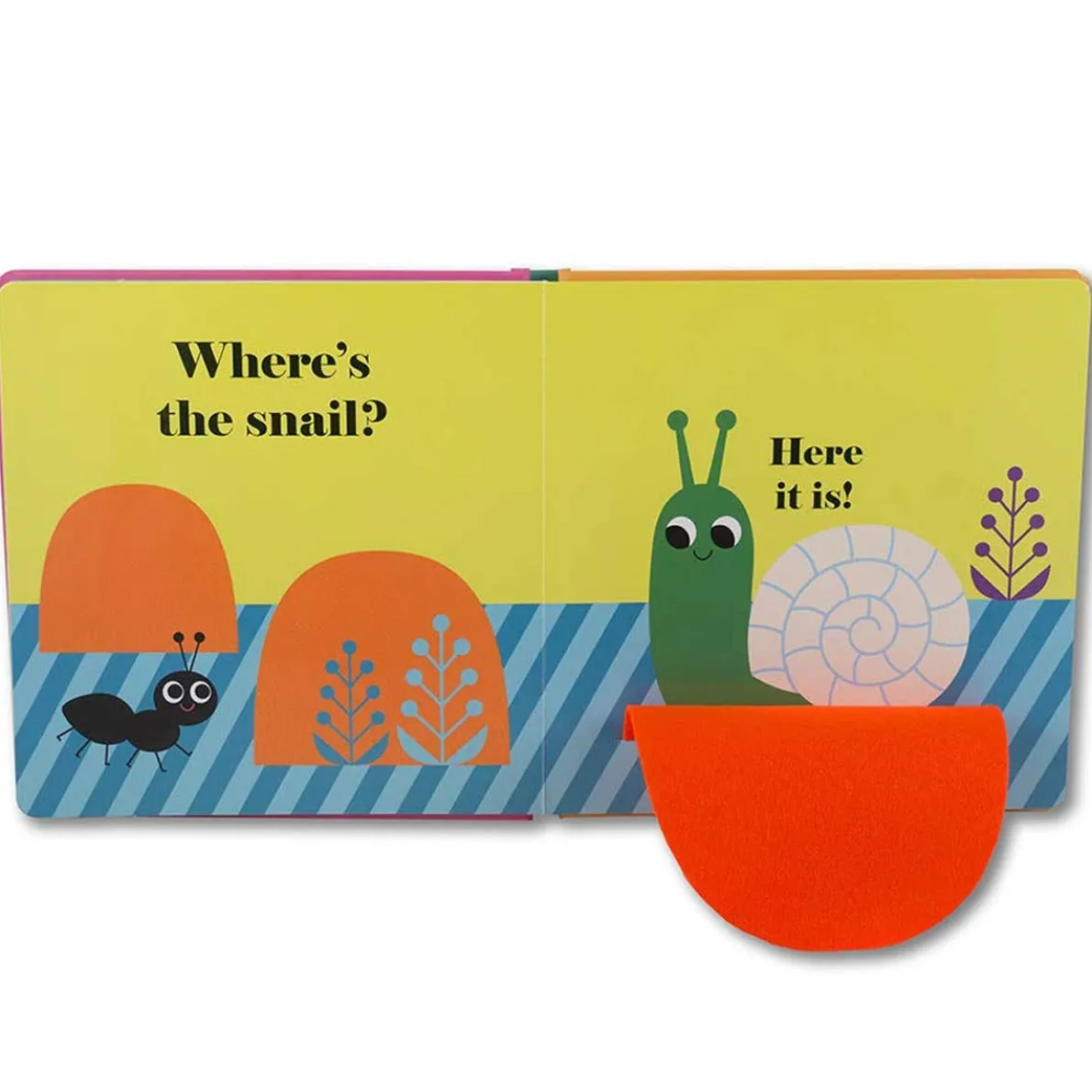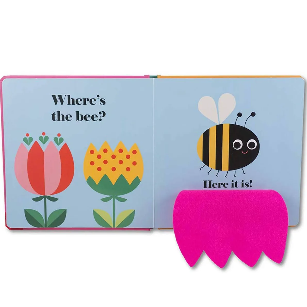 Five beautifully illustrated spreads show a series of friendly bugs hiding behind bright felt flaps. And there’s a mirror on the final page! A perfect book to share with very little ones.