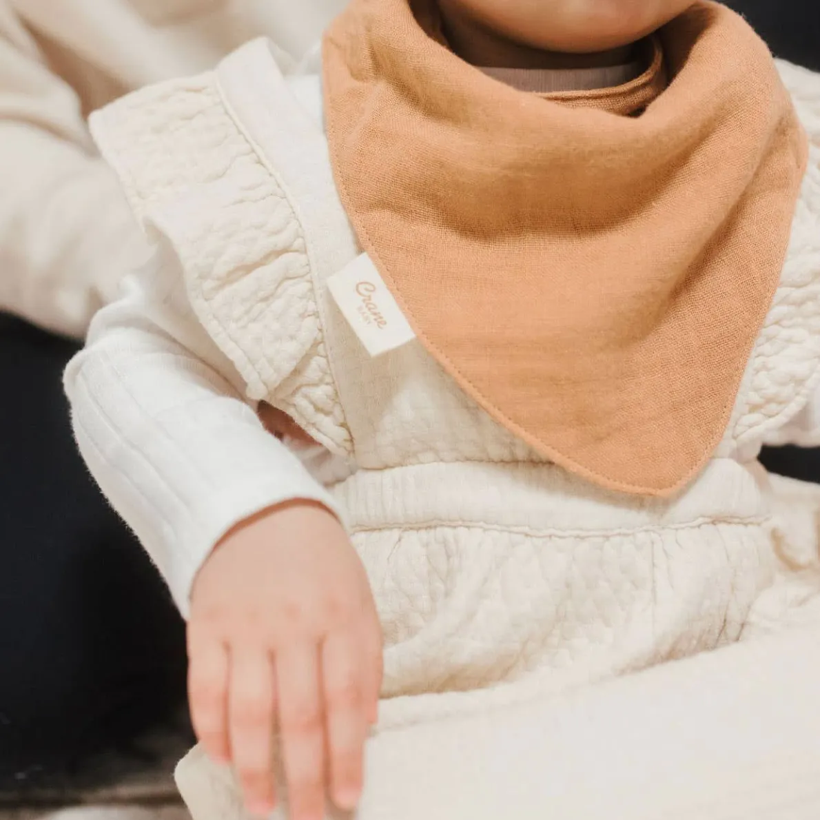 The Willow Muslin Bib Set is rich in natural textures and includes three wonderfully baby bibs. Each have a distinct design with a sustainable approach to the breathable and gentle-to-the-skin fabric, making it comfortable, and snaps that allow it to be adjusted. As a result, it grows along with your baby. This bandanna-style baby bib set coordinates wonderfully with their willow burp cloths, swaddles, and baby nursery bedding sets. The collection would make a beautiful gift.