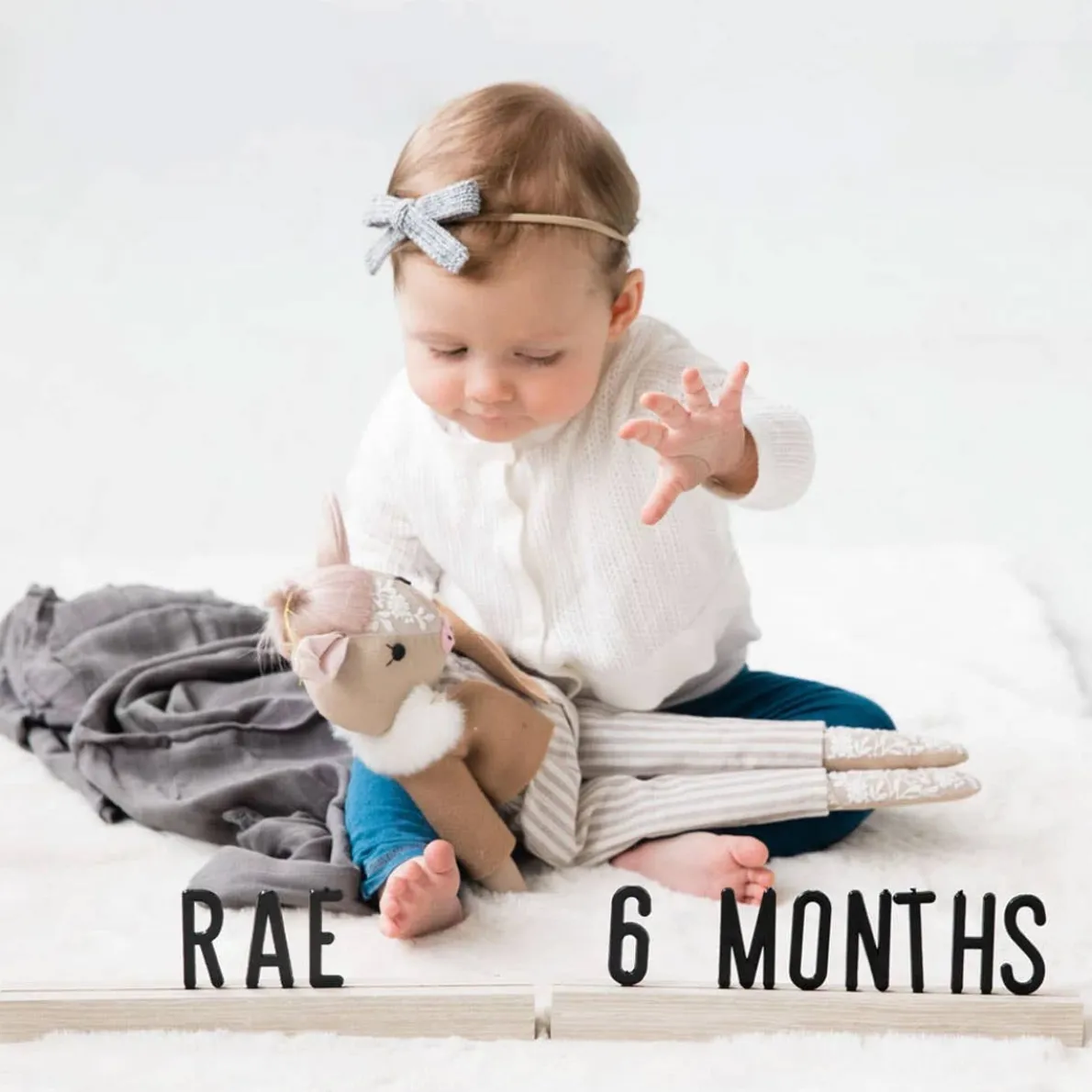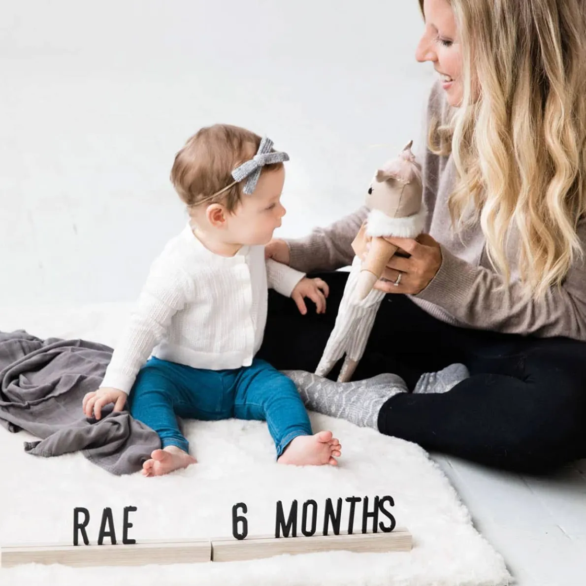 Hello baby! Welcome your adorable little bundle of joy and post your favorite pictures with Pearhead’s wooden letter ledge set. This fun take on the popular letterboard is sure to make your Instagram pictures pop! The wooden letter ledge set includes two wooden boards and 123 black plastic letters and numbers to set within the letter ledges. The ledges are each 10” long so you can personalize your board with multiple phrases! Have fun posting your pregnancy announcement with this board or welcome your baby girl or baby boy.