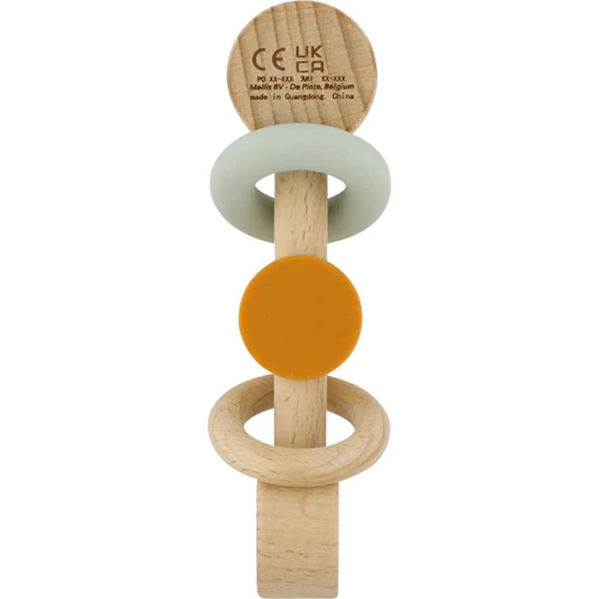 Playfully designed for grasping little hands, this rattle is perfect for newborns and tiny ones. Each new friend brings all kinds of sensory stimulation with its soft silicone and smooth beechwood, all with rounded edges and cheerful colours to attract baby’s eye. There’s a gentle, satisfying rattling sound and the silicone parts are great to nibble on as your little one’s motor skills and hand-eye coordination develop.